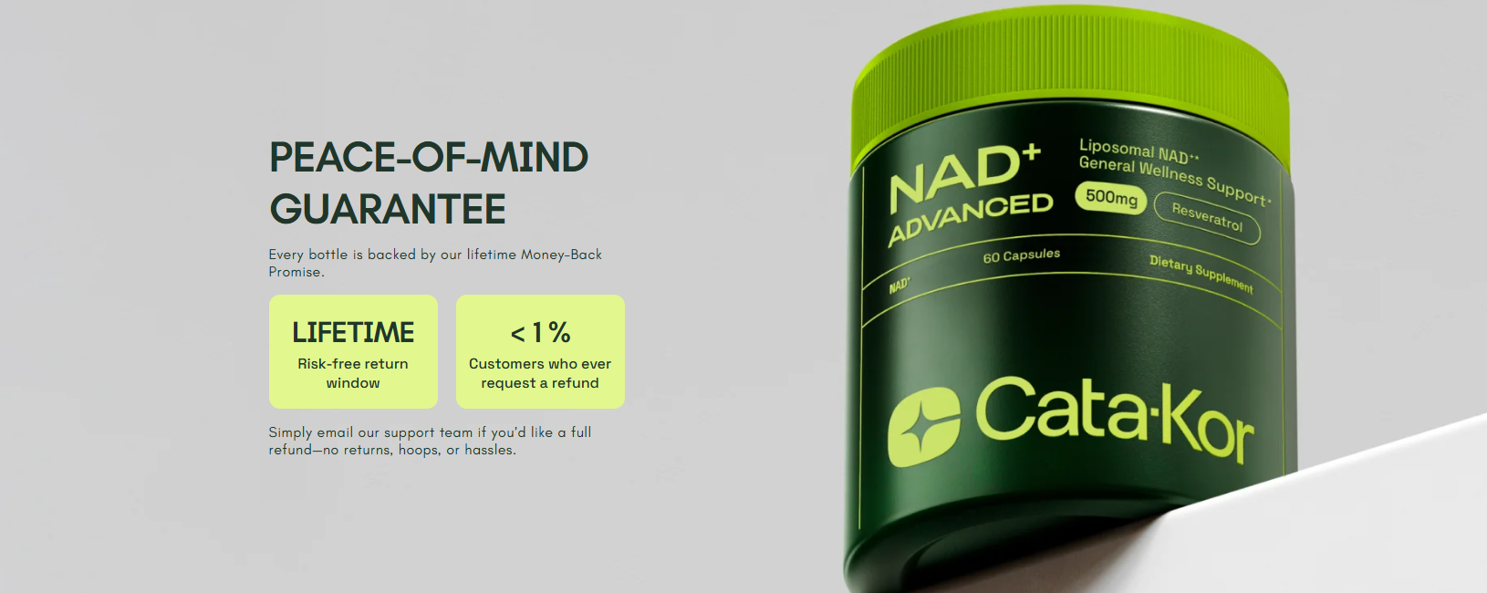 Cata-Kor’s Liposomal NAD+ with Resveratrol is a high-purity NAD supplement designed to support cellular energy and healthy aging.